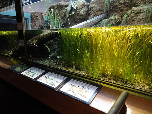水鳥たちの奥に進むと、分園の目玉ともいえる水生物館があります。