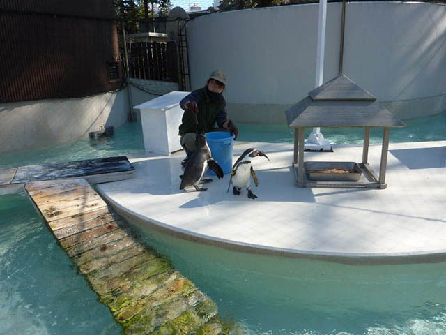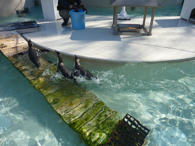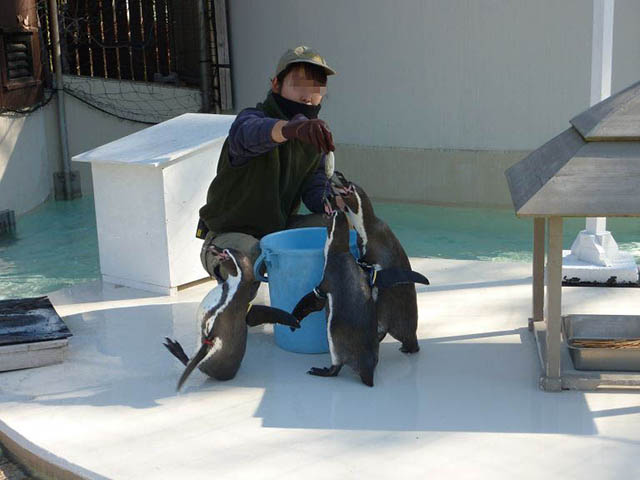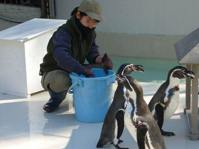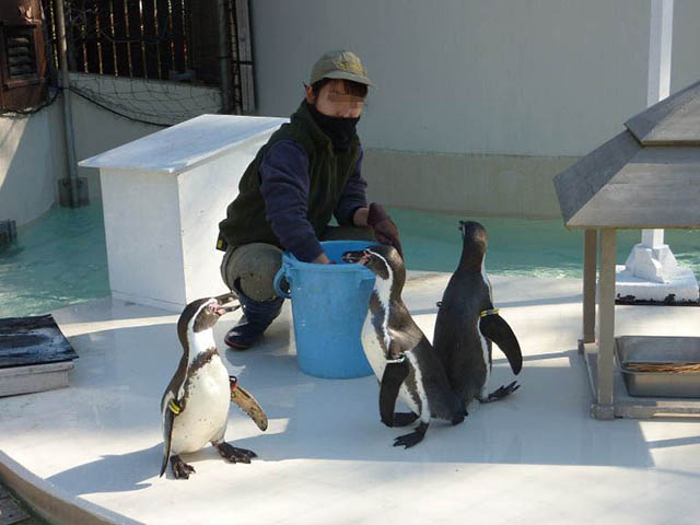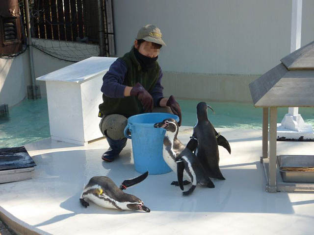 飼育員さんがごはんを持ってくると、大急ぎで駆け寄っていきました。