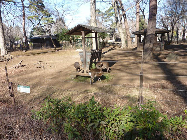 園の中央には大放飼場があり、シカやタンチョウがいます。