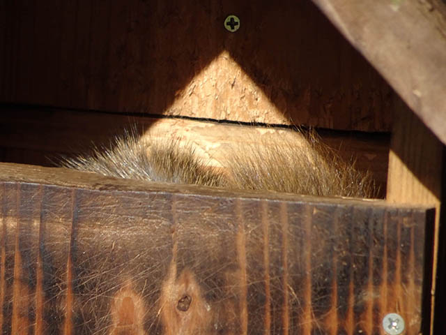 昼間は寝てるムササビだけど、この巣箱だと見える。