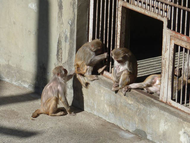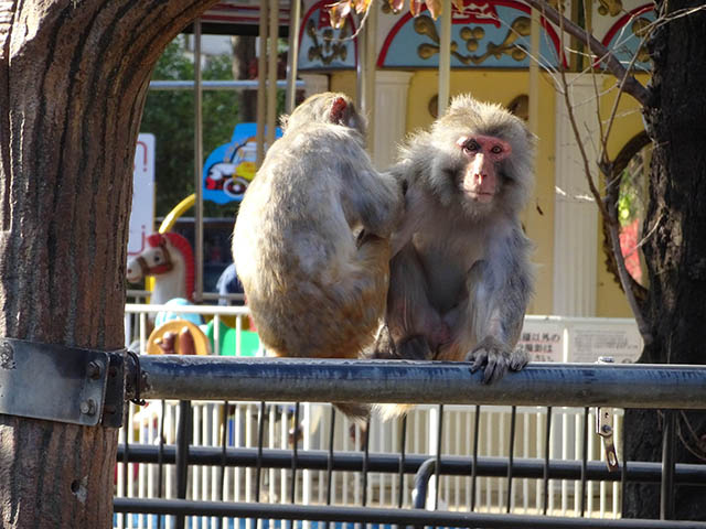 猿山にアカゲザルがいます。
