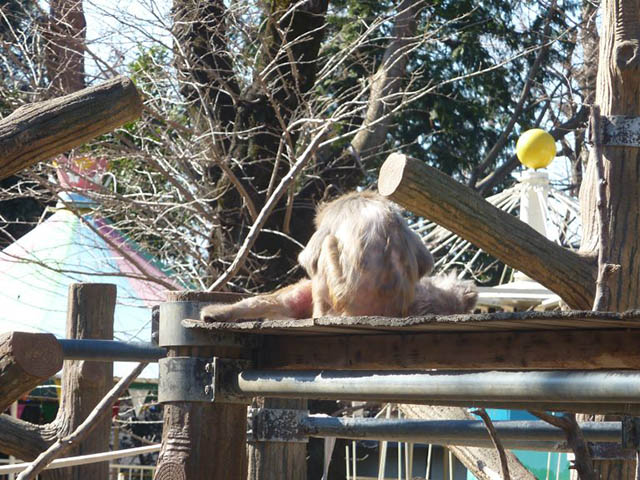 どこの猿山にもハゲちゃった個体がいます。
