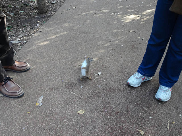 他のリスより小さくて動きもそんなに速くなく、逃げようともしない。