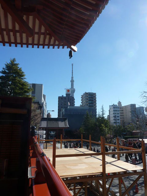 正面に浅草寺。