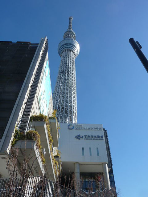 ツリーの隣にすみだ水族館。