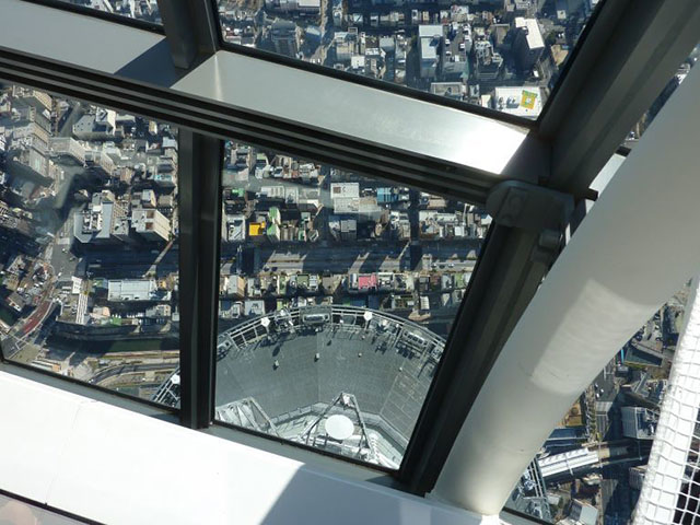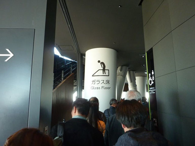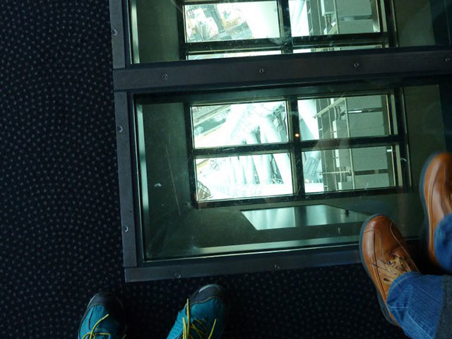 展望デッキに戻り、順路に沿ってしばらく進むと、噂のガラス床のエリアが。