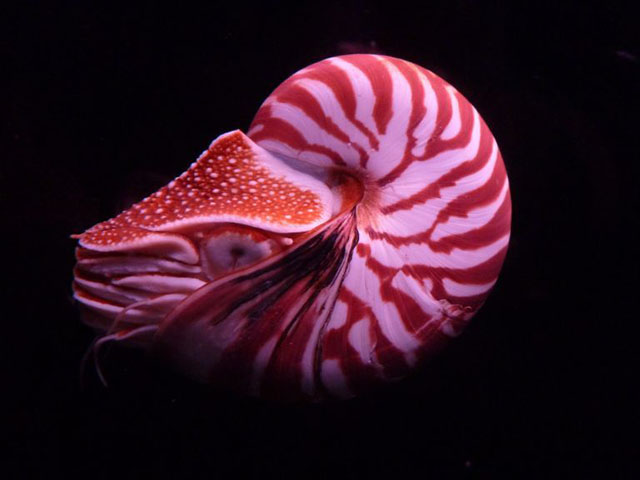 さっそくアンモナイト……じゃなくてオウムガイ。