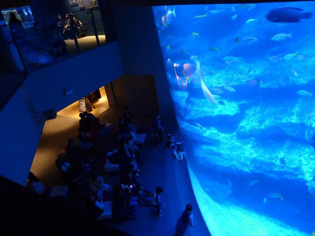 1階に降りれば泳いでいる姿を下から見ることもできます。