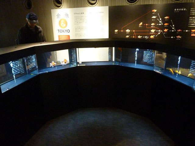葛飾北齋はさまざまな魚の絵を描いているそうで、それに関連した魚を展示しています。