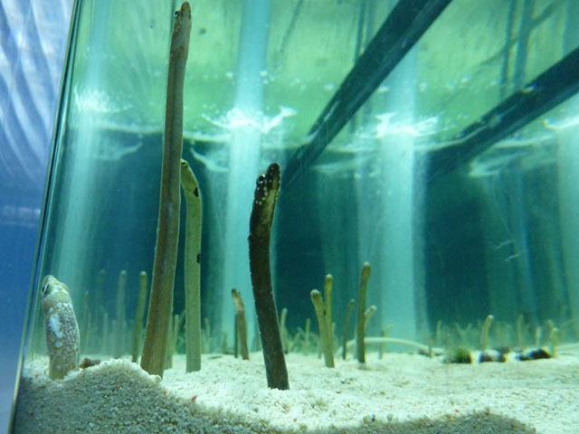 すぐ横に移動すると、小さな水槽が並んでいます。