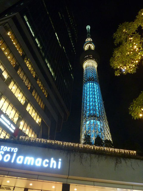 さてさて、そんなこんなで水族館を堪能して外に出ると、すっかり陽が落ちていて、美しいイルミに包まれたタワーを見ることができました。